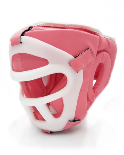 Kask treningowy z maską idealnie sprawdzi się podczas treningu sportów walki i boksu. Zaprojektowany w taki sposób aby chronić: głowę, uszy, kości szczęki, kości policzkowe oraz nos. Plastikowa krata mocowana jest do kasku za pomocą rzepów.
