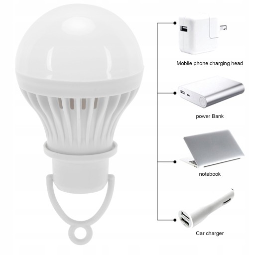 5V ŻARÓWKA LAMPKA ŚWIATŁO AWARYJNE LED USB 5W KEMPING TURYSTYCZNA