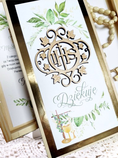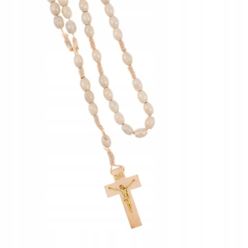 Różaniec jest w zestawie, może mieć koraliki podłużne lub okrągłe w zależności od aktualnej dostawy.