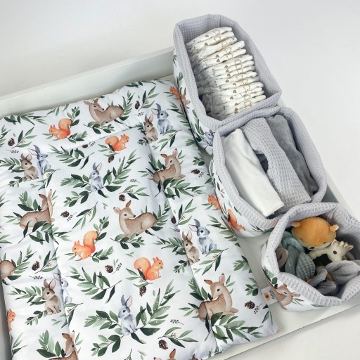 Zestaw idealnie komponuje się z naszymi materiałowymi przewijakami z kolekcji Charming Forest.