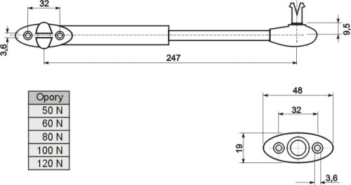 Podnośnik gazowy do klap GTV 150N, 2 sztuki