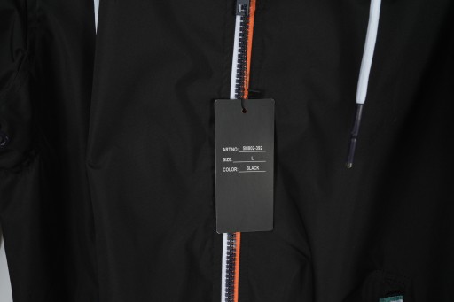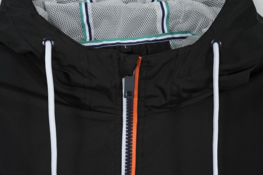 - Czarna lekka kurtka dla mężczyzn, idealna na okres przejściowy - Zapinana na zamek błyskawiczny, z kapturem - Dwie boczne kieszenie zapinane na zamek błyskawiczny, w których można schować drobiazgi, aby mieć je zawsze pod ręką - Dół kurtki oraz rękawy zakończone ściągaczami, co pozwala zapobiec przedostawaniu się zimnego powietrza pod ubranie.