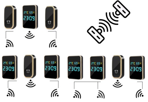 Każdy nadajnik komunikuje się z odbiornikiem za pomocą unikatowego kodu sygnału, co eliminuje możliwość uruchomienia innego odbiornika niż ten przypisany do przycisku dzwonka.