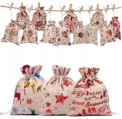 Kalendarz wielokrotnego użytku, sznurek jest łatwy do zdjęcia, woreczki łatwo i bezpiecznie ochraniają prezenty, mogą być również użyte jako torby na prezenty świąteczne.