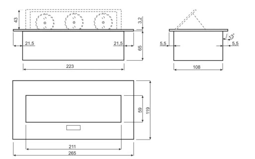 - wymiary otworu montażowego: 223 x 108 x 62 mm
