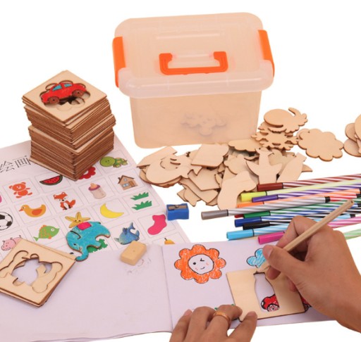 Świetna kreatywna zabawa dla dziewczynek i chłopców. Drewniany zestaw zawiera wiele różnych kształtów zwierząt, budynków, samochodzików, postaci ludzkich, roślin. Pakiet zawiera również papier z nadrukowanymi obrazami jako inspiracją. Dzieci mogą wykorzystać swoją wyobraźnię i kreatywność, nauczyć się prawidłowego trzymania ołówka, kredek czy markerów, rozwijać wyobraźnię, koncentrację i koordynację ruchową.