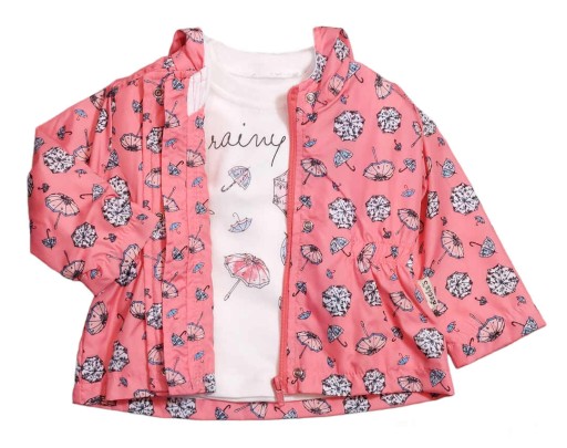 - Płaszczyk wiosenny z kapturem posiada cienką podszewką. Zapinany po całej długości na suwak oraz zamykany na trzy napy