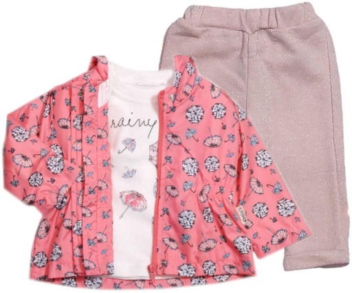 KOMPLET DZIEWCZĘCY BLUZKA SPODNIE PŁASZCZYK
