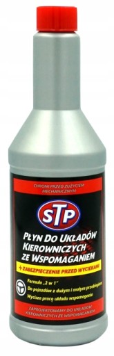 STP - płyn do układu wspomagania z uszczelniaczem utrzymuje układu wspomagania kierownicy w doskonałym stanie. Dzięki zastosowaniu formuły "Stop Leak" likwiduje wycieki płynu z układu wspomagania oraz zapobiega ich powstawaniu. Zalecany do wszystkich typów układów i samochodów. Można stosować go także jako uszczelniacz mieszając z dowolnym rodzajem płynu do wspomagania. Chroni układ wspomagania oraz pompę przed nadmiernym zużyciem oraz wycisza jego pracę.