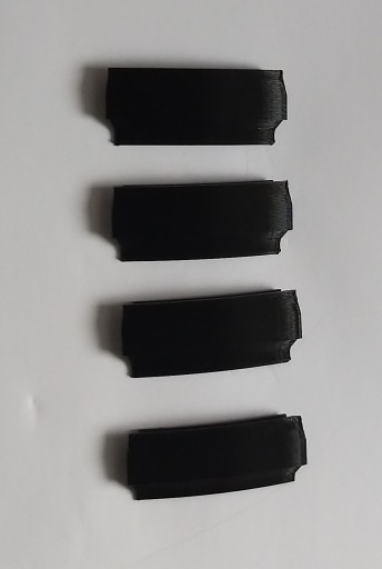 - Na pokrywce umieścić 4 czarne elementy krzyżowo, naprzeciwlegle w równych odstępach, najlepiej zacząć od miejsc połączenia czerwonego uchwytu z wiaderkiem które wskazują środek wiaderka.