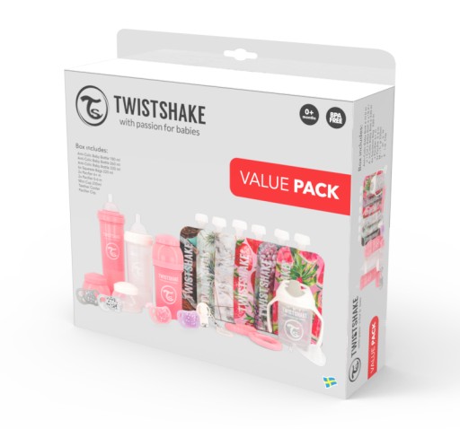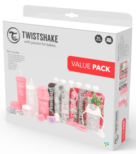 Zestaw startowy od Twistshake to kompleksowy zestaw produktów dla dziecka od urodzenia. Jest zapakowany w atrakcyjne pudełko prezentowe, więc doskonale sprawdzi się jako prezent dla młodych rodziców po narodzeniu dziecka. Występuje w dwóch wersjach kolorystycznych, więc pasuje zarówno dla dziewczynki, jak i chłopca.