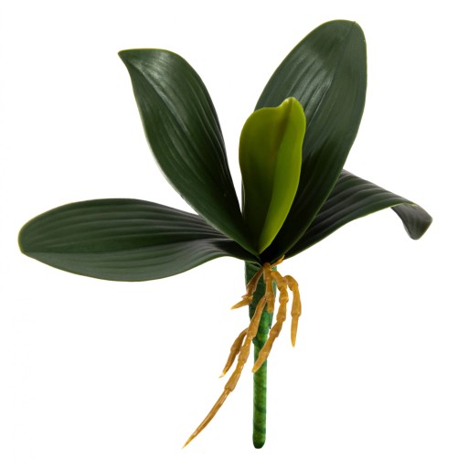 Oferta przedstawia liście do storczyka zielone. Produkt został wykonany z gumy. Liść posiada 5 liści o różnych wielkościach, u ich dołu wystają korzenie, dzięki czemu liść sprawia wrażenie naturalnego. Dodatkowo liście posiadają drucik, dzięki któremu można układać je w różne strony. Produkt doskonały do dekoracji, oraz wyrobów florystycznych.