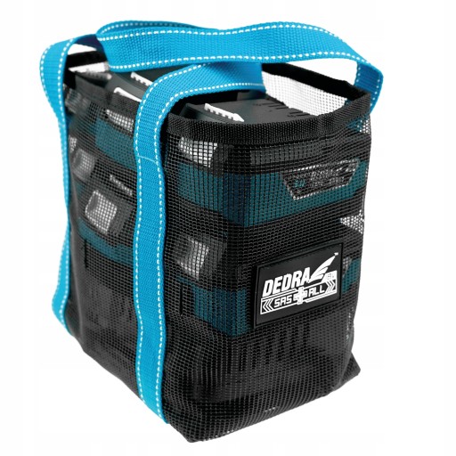 Torba/etui przeznaczona do transportu akumulatorów i ładowarki z systemu SAS+ALL. Wykonana z lekkiej siateczki oraz pasów pełniących funkcję uchwytów. Niewielka waga oraz użyty materiał pozwala na bezproblemowe przechowywanie torby w każdym miejscu. Pokrowiec pozwala transportować przykładowo jedną ładowarkę oraz do sześciu akumulatorów DED7034/DED7035.