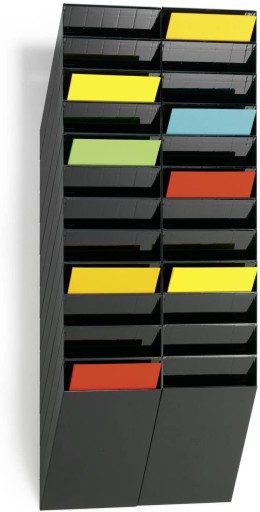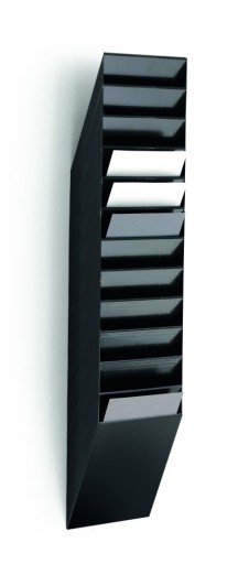 Praktyczny dwunastoczęściowy zasobnik na prospekty, ulotki bądź dokumenty, do zawieszenia na ścianie.