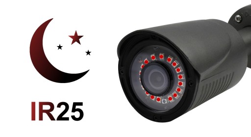 - Promiennik podczerwieni do 25m - profesjonalny promiennik IR pozwala na pracę kamer w trudnych warunkach oświetleniowych.