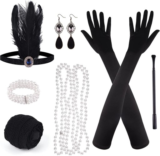 ⭐ Ten 9-częściowy zestaw akcesoriów z piórami Wielki Gatsby w stylu lat 20 to doskonały wybór dla każdej osoby, która pragnie wprowadzić do swojego stroju odrobinę klasyki i elegancji.