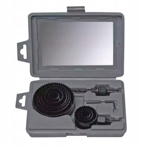 Otwornice puszkowe, służące do wycinania otwórów w drewnie, materiałach drewnopodobnych jak i płytach gipsowo kartonowych. Zestaw składa się z 9 sztuk otwornic o średnicach 19, 22, 28, 38, 44, 51, 60, 67, oraz 82mm. Otwornice przymocowane sa do adaptera przyłączeniowego, na którym dodatkowo zamontowne jest wiertło spełniające funkcje pilota. Zestaw zapakowany w funkcjonalne i praktyczne plastikowe pudełko.