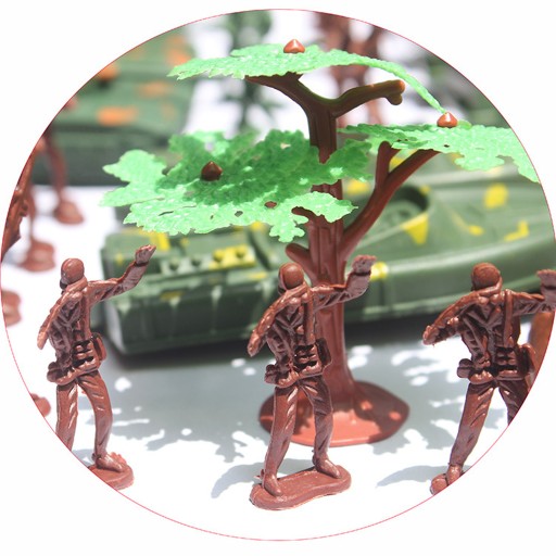 519-częściowy zestaw do zabawy w armię z realistycznie wyskalowanymi figurkami i różnymi akcesoriami. 450 sztuk 4 cm figurek żołnierzy (w 2 kolorach), 3 posterunki strażnicze, 4 czołgi, 4 samoloty bojowe i inne akcesoria (wyślemy losowo, niektóre małe akcesoria będą inne)