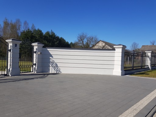 Dzięki temu że elementy, czyli słupy i murki dolne są jednorodną bryłą, montaż jest bardzo szybki i nikomu nie powinien sprawić problemu, w porównaniu np. z elementami modułowymi, gdzie każdy element należy oddzielnie zalewać i spoinować. Wystarczy jedynie wylać miejscowe stopy . Na tych że stopach ustawiamy słupy i murki, zalewając jedynie środek słupka, łączenia należy zasylikonować uszczelniaczem dekarskim, a daszki przykleić na klej mrozoodporny