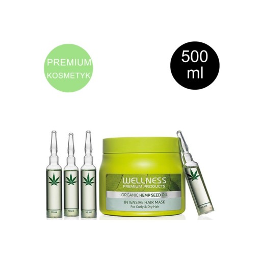 Kosmetyki Wellness Premium Products powstały na bazie tłoczonego na zimno organicznego oleju z konopii siewnych. Wykorzystując szerokie spektrum działania oleju i innych organicznych ekstraktów, naukowcy stworzyli serię, która doskonale regeneruje włosy, zmniejsza ich wypadanie i sprawia, że odzyskują naturalną witalność i elastyczność. Włosy stają się miękkie i wygładzone, zyskują objętość i otrzymują ochronę termiczną.