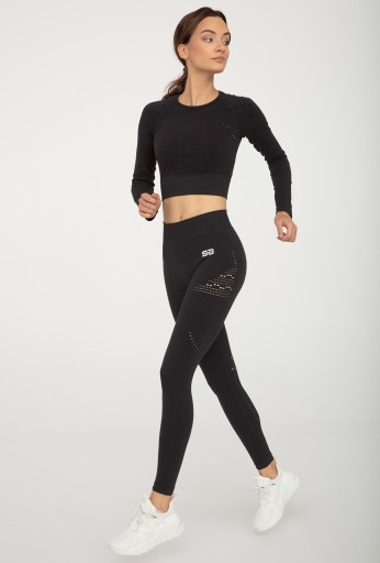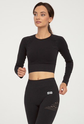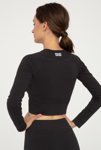 - Długi rękaw został połączony z krótkim krojem. Ażurowe wycięcia dbają o odpowiednią cyrkulację powietrza, a elastyczny materiał zapewnia pełną swobodę ruchów.