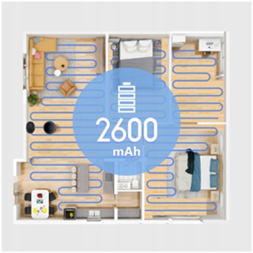 Bateria o dużej pojemności 2600 mAh wystarczy na sprzątanie obszaru ponad 120 m² w trybie standardowym na jednym ładowaniu, bez konieczności ponownego ładowania.