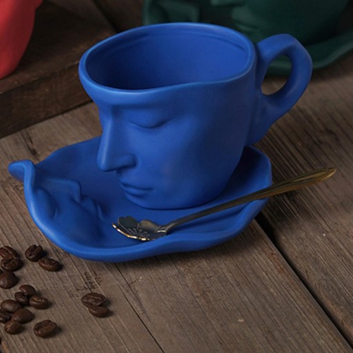 Kubki z ludzką twarzą: Znakomity design, z łyżeczką w kształcie kwiatu i podstawką z ludzką twarzą, piękną i delikatną, wniesie artystyczny motyw do twojego stołu.