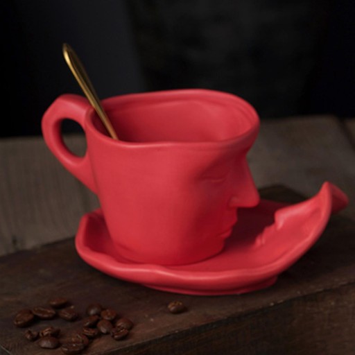 Kubki z ludzką twarzą: Znakomity design, z łyżeczką w kształcie kwiatu i podstawką z ludzką twarzą, piękną i delikatną, wniesie artystyczny motyw do twojego stołu.