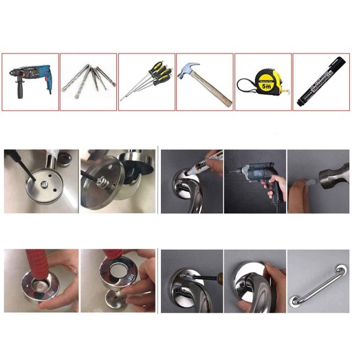 ⭐️Wielofunkcyjna: nie tylko może być używany jako podłokietnik łazienkowy, ale także może pomieścić ubrania, ręczniki... ten uchwyt może być również instalowany równolegle, pionowo lub nachylony; używany jako poręcz schodów piwnicy lub poddasze lub wszędzie tam, gdzie jest to konieczne, aby zapewnić Ci bezpieczeństwo