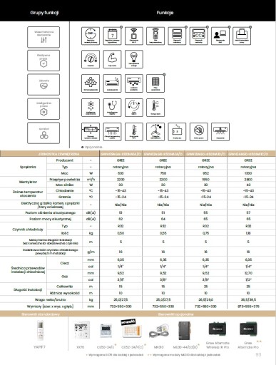 - Tryby pracy: Chłodzenie/ Ogrzewanie/ Osuszanie / Wentylator