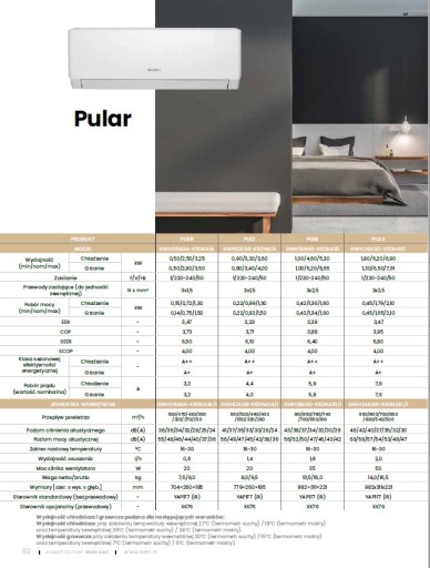 Pular, to klasyczny wygląd klimatyzatora, który wpasuje się w każde wnętrze zarówno biurowe jak i domowe.
