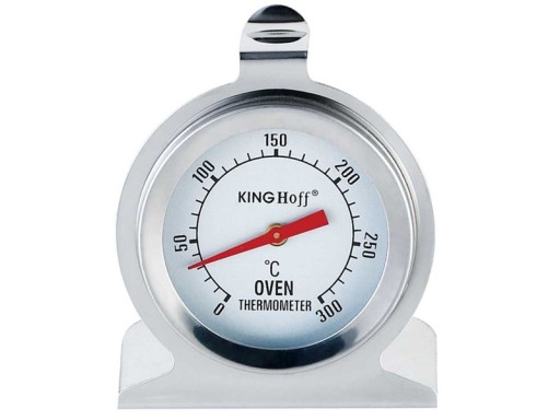 Termometr wykonany ze stali nierdzewnej. Duża, czytelna tarcza. Dokładność potwierdzona certyfikatem. Do zawieszenia na ruszcie lub postawienia na blaszce. Średnica tarczy ok. 5 cm, długość całkowita ok. 7 cm. Wskazuje temperaturę od 0 stopni C do 300 stopni C.