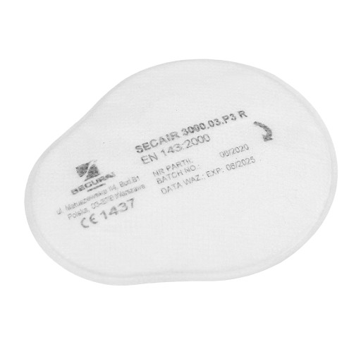 Filtry SECAIR 2000.03 P2 po skompletowaniu z dwufiltrową półmaską lub maską, chronią drogi oddechowe przed szkodliwymi substancjami występującymi pod postacią areozoli z cząstek stałych (pyły, dymy) i ciekłych (mgły), o ile stężenie fazy rozproszonej aerozolu nie przekracza wartości 30 x NDS w przypadku skompletowania z półmaską, oraz 1000 x NDS z maską. Filtr składa się z polipropylenowego stelaża, do którego przymocowany jest dwustronnie materiał filtracyjny. Stelaż zawiera łącznik umożliwiający połączenie go z półmaską lub maską posiadającą złącza typu bagnetowego. Na warstwie filtracyjnej znajduje się nadruk zawierający wymagane informacje o wyrobie.