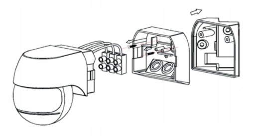 8. Zamocować czujnik na przykręconej uprzednio do ściany pokrywie podstawy.