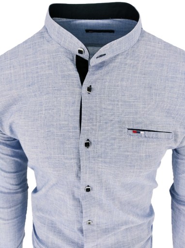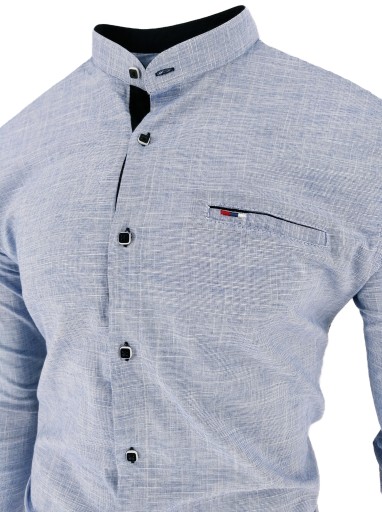 РУБАШКА МУЖСКАЯ, СИНИЙ ВОРОТНИК-СТОЙКА, ЗНАК, 07 Л