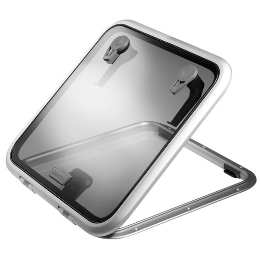Luk jachtowy firmy Lewmar, seria Low Profile 40. Rama profilowana odporna na korozję, wykonana ze stopów oksydowanych. Gwarancję wodoszczelności zapewnia, specjalny sposób mocowania szyby akrylowej. Zawiasy oporowe utrzymują luk pod dowolnym kątem do 95st. Niski profil ramki o wysokości 15mm.
