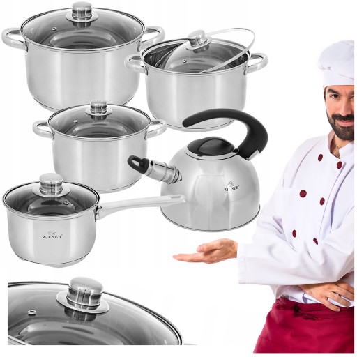 9-elementowy zestaw stalowych garnków indukcyjnych Zilner.