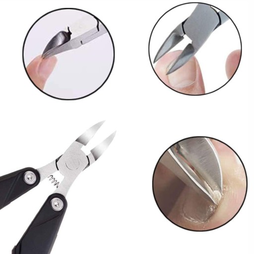 Obcinacz do paznokci jest specjalnie zaprojektowany do grubych paznokci. Można nimi odciąć wrośniętą część paznokcia. Po przycięciu wypoleruj paznokcie pilnikiem, aby wygładzić i zagęścić skórkę, skutecznie rozwiązując problemy z paznokciami.
