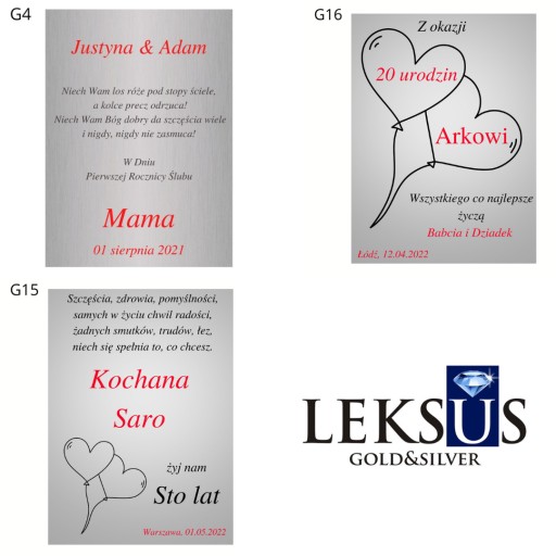 Na prośbę klienta wykonujemy GRAWER, na blaszkach które umieszczamy na tyle obrazka. Treść graweru prosimy umieścić w "WIADOMOŚĆ DO SPRZEDAJĄCEGO"