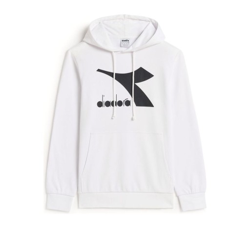 Luźna bluza typu "kangurka" o regularnym kroju, z szerokim i wygodnym kapturem, który można dopasować za pomocą sznurków. Bawełniana bluza wykonana z przyjemnej w dotyku, miękkiej dzianiny, która dobrze odprowadza wilgoć z dala od skóry oraz utrzymuje ciepło. Długie rękawy nie ograniczają ruchów. Duża kieszeń z przodu ułatwia przechowywanie drobnych przedmiotów. Elastyczne ściągacze w pasie i przy rękawach dla dużego komfortu i dobrego dopasowania do kształtu sylwetki. Na przodzie bluzy duże logo firmy Diadora.