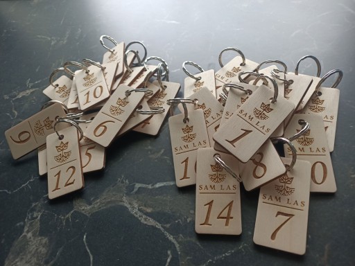 Zawieszka z numerkiem wykonana jest ze sklejki brzozowej o grubości 3 mm