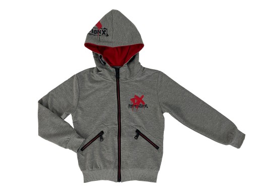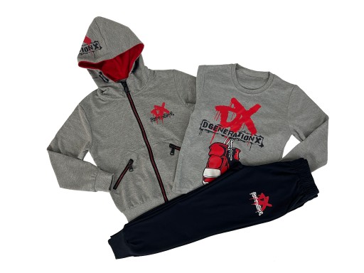 W skład dresu wchodzą: bluza z kapturem zapinana na zamek