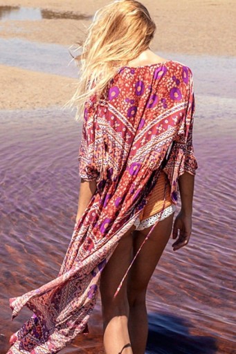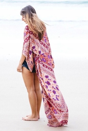 Pareo na plażę, kolorowa narzutka kimono z motywem azteckim.