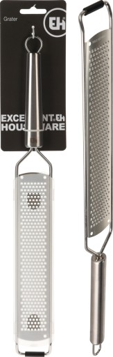 Tarka kuchenna o długości 38 cm. Wykonana ze stali nierdzewnej, zakończona gumowym ochraniaczem. Idealna do tarcia sera, czekolady oraz przypraw oraz skórki z cytryny lub pomarańczy. Posiada etui ochronne, dzięki czemu będzie zabezpieczona podczas przechowywania w szafce. Praktyczny otwór w rączce umożliwia zawieszenie. Wyprodukowano zgodnie z europejskimi standardami.