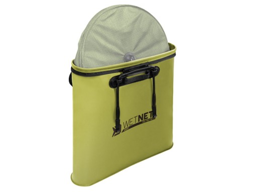 Delphin WetNET Keep to wodoodporna torba zaprojektowana specjalnie do przechowywania i transportu podbieraków lub siatek. Materiał EVA, z którego jest wykonana, jest całkowicie wodoodporny. Dzięki temu nadaje się do przewożenia mokrych sieci, bez ryzyka wycieku wody na inny sprzęt lub w samochodzie. Zaletą tego materiału jest to, że nie pochłania nieprzyjemnych zapachów i zapobiega ich wydostawaniu się po zamknięciu torby. Materiał jest również bardzo łatwy do czyszczenia i mocny, dzięki temu WetNET zachowuje swój kształt w każdych warunkach. Uchwyty są wykonane z solidnego plastiku. Dzięki temu systemowi obsługa i transport są bardzo wygodne. Delphin WetNET Keep został zaprojektowany w neutralnym zielonym kolorze z czarnymi dodatkami, doskonale komponując się z otoczeniem i jest bardzo praktycznym elementem wyposażenia wędkarskiego.
