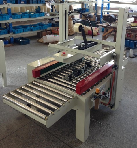 Ekonomiczna i prosta w obsłudze zaklejarka automatycznie dostosowuje się do wielkości kartonów o rozmiarze W 150-500 mm H 120-500 mm. Pneumatyczne urządzenie zakleja karton jednocześnieod góry i od spodu. Obsługuje typy taśmyOPP, BOPP orazPVC. Do pracy urządzenia niezbędny jest kompresor .
