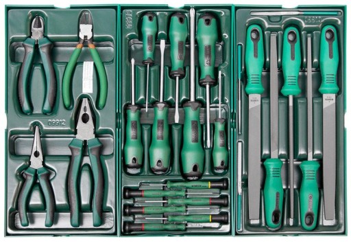 Oferowana na tej aukcji szafka jest w pełni wyposażona wkładami narzędziowymi firmy SATA.