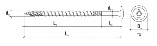 Wkręty do konstrukcji drewnianych z łbem talerzowym, gniazdo TX