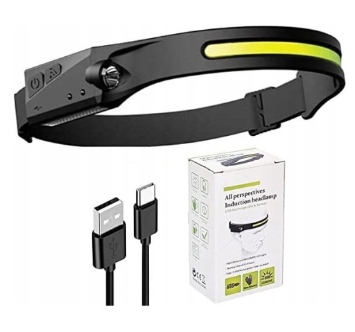 Latarka Czołowa z indukcyjnym włącznikiem na ruch oraz standardowym. Ładowana za pomocą kabla USB.