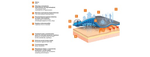- Termoaktywna zapewnia komfort termiczny, skutecznie utrzymuje stałą temperaturę ciała, chroni przed przegrzaniem i wychłodzeniem.